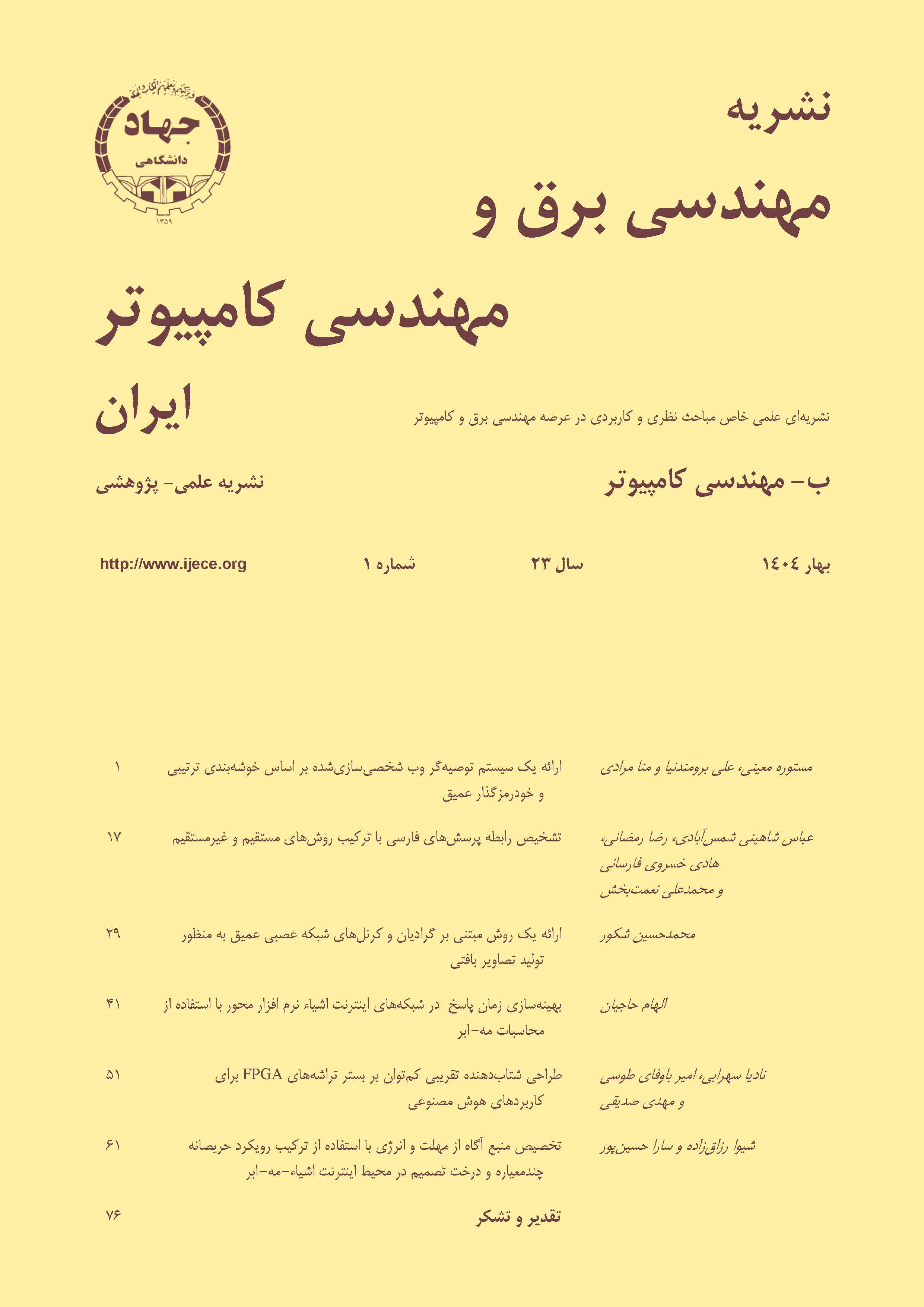 آخرین شماره شماره 2 , 2 دوره 23 بهار 1404 ارسال مقاله به نشریه شماره های پیشین دوره 23 ✓ شماره 2 , 2 - بهار 1404 ✓ شماره 1 , 1 - بهار 1404 دوره 22 ✓ شماره 4 , 1 - زمستان 1403 ✓ شماره 4 , 2 - زمستان 1403 ✓ شماره 3 , 2 - پاییز 1403 ✓ شماره 3 , 1 - پاییز 1403 ✓ شماره 2 , 1 - تابستان 1403 ✓ شماره 2 , 2 - تابستان 1403 ✓ شماره 1 , 1 - بهار 1403 ✓ شماره 1 , 2 - بهار 1403 دوره 21 ✓ شماره 4 , 1 - زمستان 1402 ✓ شماره 4 , 2 - زمستان 1402 ✓ شماره 3 , 1 - پاییز 1402 ✓ شماره 3 , 2 - پاییز 1402 ✓ شماره 2 , 1 - تابستان 1402 ✓ شماره 2 , 2 - تابستان 1402 ✓ شماره 1 , 1 - بهار 1402 ✓ شماره 1 , 2 - بهار 1402 دوره 20 ✓ شماره 4 , 1 - زمستان 1401 ✓ شماره 4 , 2 - زمستان 1401 ✓ شماره 3 , 1 - پاییز 1401 ✓ شماره 3 , 2 - پاییز 1401 ✓ شماره 2 , 1 - تابستان 1401 ✓ شماره 2 , 2 - تابستان 1401 ✓ شماره 1 , 1 - بهار 1401 ✓ شماره 1 , 2 - بهار 1401 دوره 19 ✓ شماره 4 , 1 - زمستان 1400 ✓ شماره 4 , 2 - زمستان 1400 ✓ شماره 3 , 1 - پاییز 1400 ✓ شماره 3 , 2 - پاییز 1400 ✓ شماره 2 , 1 - تابستان 1400 ✓ شماره 2 , 2 - تابستان 1400 ✓ شماره 1 , 1 - بهار 1400 ✓ شماره 1 , 2 - بهار 1400 دوره 16 ✓ شماره 4 , 1 - زمستان 1397 ✓ شماره 4 , 2 - زمستان 1397 ✓ شماره 3 , 2 - پاییز 1400 ✓ شماره 3 , 1 - پاییز 1397 ✓ شماره 2 , 1 - تابستان 1400 ✓ شماره 2 , 2 - تابستان 1400 ✓ شماره 1 , 2 - بهار 1400 ✓ شماره 1 , 1 - بهار 1397 دوره 18 ✓ شماره 4 , 1 - زمستان 1399 ✓ شماره 4 , 2 - زمستان 1399 ✓ شماره 3 , 1 - پاییز 1399 ✓ شماره 3 , 2 - پاییز 1399 ✓ شماره 2 , 1 - تابستان 1399 ✓ شماره 2 , 2 - تابستان 1399 ✓ شماره 1 , 1 - بهار 1399 ✓ شماره 1 , 2 - بهار 1399 دوره 17 ✓ شماره 4 , 1 - زمستان 1398 ✓ شماره 4 , 2 - زمستان 1398 ✓ شماره 3 , 1 - پاییز 1398 ✓ شماره 3 , 2 - پاییز 1398 ✓ شماره 2 , 1 - تابستان 1398 ✓ شماره 2 , 2 - تابستان 1398 ✓ شماره 1 , 1 - بهار 1398 ✓ شماره 1 , 2 - بهار 1398 دوره 15 ✓ شماره 4 , 1 - زمستان 1396 ✓ شماره 4 , 2 - زمستان 1396 ✓ شماره 3 , 1 - پاییز 1396 ✓ شماره 3 , 2 - پاییز 1396 ✓ شماره 2 , 1 - تابستان 1396 ✓ شماره 2 , 2 - تابستان 1396 ✓ شماره 1 , 1 - بهار 1396 ✓ شماره 1 , 2 - بهار 1396 دوره 14 ✓ شماره 4 , 1 - زمستان 1395 ✓ شماره 4 , 2 - زمستان 1395 ✓ شماره 3 , 1 - پاییز 1395 ✓ شماره 3 , 2 - پاییز 1395 ✓ شماره 2 , 2 - تابستان 1395 ✓ شماره 2 , 2 - تابستان 1395 ✓ شماره 1 , 1 - بهار 1395 ✓ شماره 1 , 2 - بهار 1395 دوره 13 ✓ شماره 4 - زمستان 1394 ✓ شماره 3 - پاییز 1394 ✓ شماره 2 - تابستان 1394 ✓ شماره 1 - بهار 1394 دوره 12 ✓ شماره 4 - زمستان 1393 ✓ شماره 3 - پاییز 1393 ✓ شماره 2 - تابستان 1393 ✓ شماره 1 - بهار 1393 دوره 11 ✓ شماره 4 - زمستان 1392 ✓ شماره 3 - پاییز 1392 ✓ شماره 2 - تابستان 1392 ✓ شماره 1 - بهار 1392 دوره 10 ✓ شماره 4 - زمستان 1391 ✓ شماره 3 - پاییز 1391 ✓ شماره 2 - تابستان 1391 ✓ شماره 1 - بهار 1391 دوره 9 ✓ شماره 4 - زمستان 1390 ✓ شماره 3 - پاییز 1390 ✓ شماره 2 - تابستان 1390 ✓ شماره 1 - بهار 1390 دوره 8 ✓ شماره 4 - زمستان 1389 ✓ شماره 3 - پاییز 1389 ✓ شماره 2 - تابستان 1389 ✓ شماره 1 - بهار 1389 دوره 7 ✓ شماره 4 - زمستان 1388 ✓ شماره 3 - پاییز 1388 ✓ شماره 2 - تابستان 1388 ✓ شماره 1 - بهار 1388 دوره 6 ✓ شماره 4 - زمستان 1387 ✓ شماره 3 - پاییز 1387 ✓ شماره 2 - تابستان 1387 ✓ شماره 1 - بهار 1387 دوره 5 ✓ شماره 4 - زمستان 1386 ✓ شماره 3 - پاییز 1386 ✓ شماره 2 - تابستان 1386 ✓ شماره 1 - بهار 1386 دوره 4 ✓ شماره 2 - پاییز - زمستان 1385 ✓ شماره 1 - بهار - تابستان 1385 دوره 3 ✓ شماره 2 - پاییز - زمستان 1384 ✓ شماره 1 - بهار - تابستان 1384 دوره 2 ✓ شماره 2 - پاییز - زمستان 1383 ✓ شماره 1 - بهار - تابستان 1383 دوره 1 ✓ شماره 2 - پاییز - زمستان 1382 ✓ شماره 1 - بهار - تابستان 1382 صفحات نشریه • شناسنامه • اصول اخلاقی • راهنمای تدوين مقاله • درباره ما • ارزيابی تماس با نشریه مرور • شماره جاری • براساس شمارگان نشریه • نمایه نویسندگان • براساس موضوعات • براساس نویسندگان